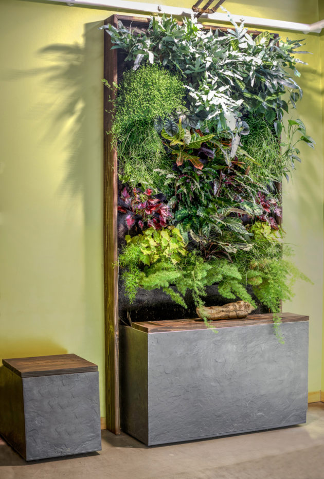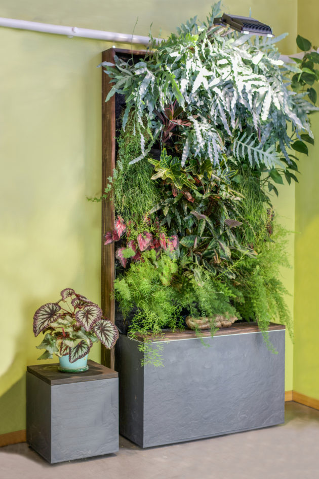 Hauteur 2,3 m ; 1 m de largeur. Surface végétalisée : 1,4 m2.